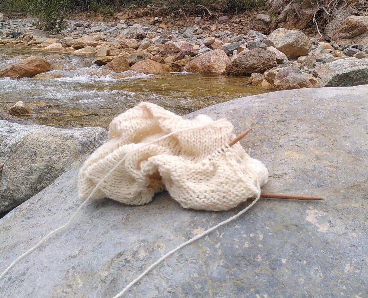 I am Iris Salvinia, I create garments from scratch, starting from the sheep, cleaning, spinning, colouring with plants and then knitting or weaving a beautiful piece.