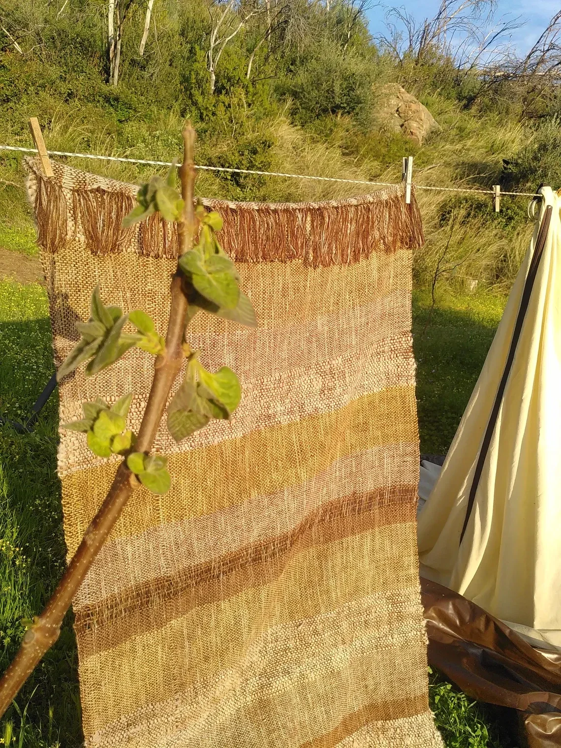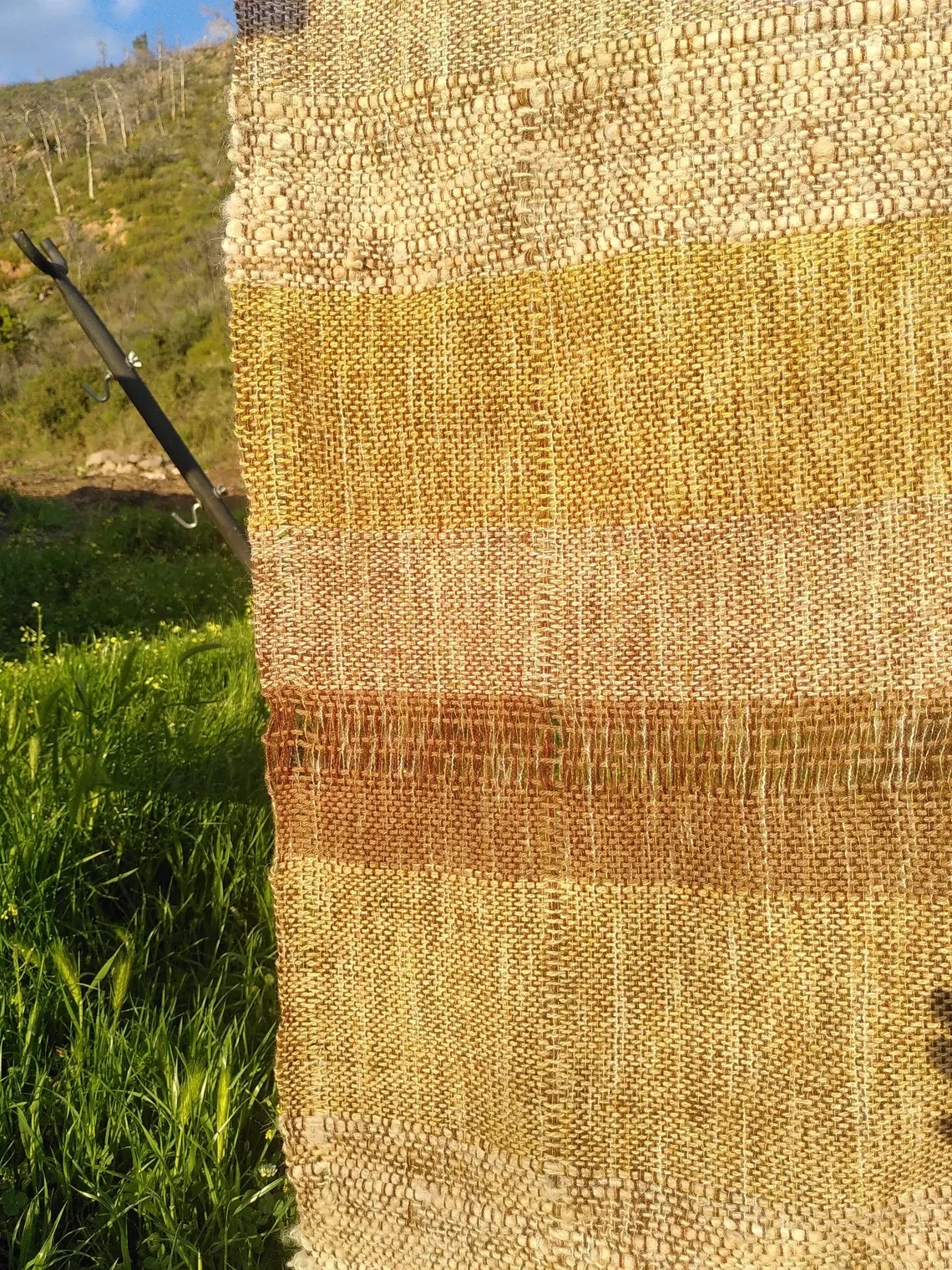 - Made on my traveling loom and hand dyed with natural dyes, different one for the different colours.